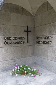 An der Außenseite der katholischen Pfarrkirche „Zur heiligen Familie“ ist eine Denkmalecke mit allgemeiner Inschrift (ohne Namen) angebaut.