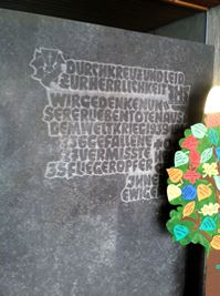 Steintafel am Eingang zur St.-Andreas-Kirche. Keine Namen