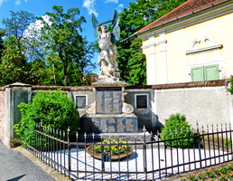 Auf einem mehrstufigen Sockel Ecke Lafnitztalstraße – Kirchweg steht die Statue eines Engels mit Schild und Schwert. Nach hinten ist das Monument mit einer Mauer und nach vorne mit einem Metallgitter eingefriedet.