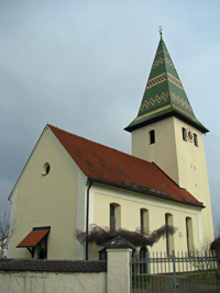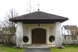 Steinerne Gedenktafeln an der Aussegnungshalle auf dem Friedhof, bei der Kirche