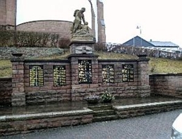 Das Kriegerdenkmal befindet sich unterhalb der Kirche „St. Martinus“. Eine mit Sandsteinen verkleidete Wand, in die fünf Namenstafeln aus Marmor eingefügt sind. Über dem mittleren Teil befindet sich eine Skulptur mit einem sterbenden und einem helfenden Soldaten.