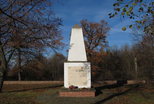 Der Steinobelisk am Hainberg wurde von der Roten Armee zum Gedenken an die hier in einem Massengrab beerdigten