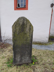Gedenkstein für die Opfer des 2. Weltkrieges; 1956 auf dem neuen Liebethaler Friedhof errichtet, im Oktober 2020 an den Ostgiebel der Liebethaler Kirche versetzt.