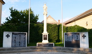 Beidseits einer Immaculatasäule an der Hauptstraße befinden sich freistehende Namenstafeln.