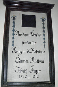 Tafel 1815: Aus diesem Kirchenspiel starben für König und Vaterland (Name) 1813-1815
