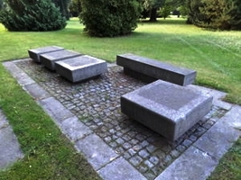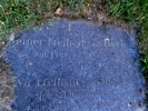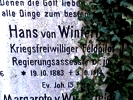 Grabhinweis erhalten; Tafel an Urnengrabring für verdiente Sozialisten mit stilisierten Eisernen Kreuz: „Im Gedenken an Familie Longwitz 1943 -1945“