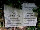 Gedenktafel an der Grabanlage von Gronau: „Ritter des Ordens Pour Le Merite mit Eichenlaub und anderer höchsten Orden, Mitkämpfer von 1870 / 71, Oberbefehlshaber der Armeegruppe Gronau im Weltkriege“