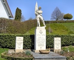 Mittlerer Pfeiler: 1914-1918 Den im Weltkrieg gefallenen Helden. 264 zogen aus, 49 kehrten nicht zurück.