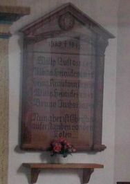 Steingedenktafel für die Gefallenen des 1. Weltkriegs an der Kirchen Außenwand;