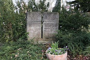 im Hauptfriedhof; beide nahe beieinander, a) franz. Denkmal; Steinplastik „liegender Mann“ mit Inschrift; b) zwei Steine nebeneinander, mit Namen