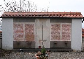 Im Stadtteil St. Christina, im Friedhof; überdachte Gedenkwand; zusätzlich Hinweise zu Soldaten von privaten Gedenksteinen (Friedhof St. Christina)