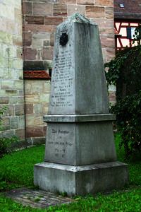 Das Steindenkmal vor der St. Wolfgangkirche trägt nur die Namen der Opfer des 1. Weltkriegs. Die Gefallenen und Vermissten des 2. Weltkriegs sind auf einer Holztafel im Inneren der Kirche verzeichnet, die leider abgeschlossen ist. Detaillierte Angaben zu den Gefallenen und Vermissten stammen aus dem Buch „Mahnmale zum Frieden“, ISBN 978-3-9807896-8-4, Herausgeber: Landkreis Roth, das in Zusammenarbeit ehrenamtlicher Mitarbeiter mit Gemeindeverwaltungen, Krieger- und Soldatenvereinen und Heimatkundlern entstanden ist.