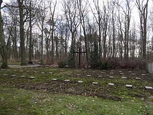 Auf dem Friedhof befindet sich im hinteren Teil die Grabanlage der Gefallenen. Die Namen stehen auf einfachen, liegenden