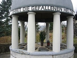 Steinbaldachin, Namenstafeln der Gefallenen der Kriege 1866, 1870/71,1. Weltkrieg unter dem Steindach; 2. Weltkrieg außen am Sockel