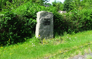 Schauenstein (KZ-Gräber), Landkreis Hof, Oberfranken, BayernPLZ 95197 Natursteindenkmal mit aufgesetzten Metallbuchstaben für 28 hier begrabene KZ-Häftlinge in der Mitte einer länglichen Rasenfläche auf dem Ortsfriedhof zwischen Kriegerdenkmal (siehe gesonderten Beitrag) und Friedhofskapelle.