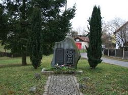 Naturstein mit zwei Marmortafeln auf dem Dorfplatz
