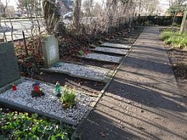Holzkreuz und Grabeinfassung gesondert neben dem Ehrengräberfeld