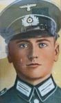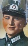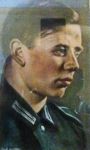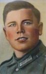 Fotos der Gefallenen, an der Außenwand Namenstafel der 1945 durch russische Soldaten erschossenen Zivilpersonen.