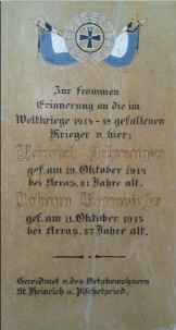 Kirchentafel Zur frommen Erinnerung an die im Weltkriege 1914-18 gefallenen Krieger v. hier:
