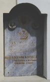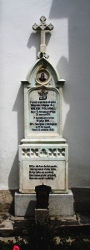 in slowenischer Sprache. Die Grabtafel Kutej ist in die Kirchenmauer eingelassen und ebenfalls in slowenischer