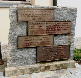 Südmauer der Kirche ein zweisprachiges Denkmal für die Opfer der Gewaltherrschaft, bestehend aus