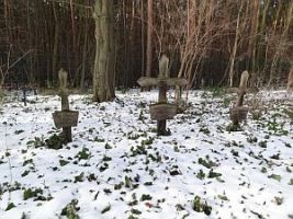 verwittertes Holzkreuz; nicht eindeutig als Kriegsopfer zuzuordnen