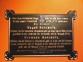 zwei Namen von Gemeindemitgliedern auf, die Opfer des Deutsch–Französischen Krieges wurden. Eine