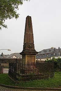 Im Friedhof Trier St. Matthias; quadratische Säule, oberer Teil sich verjüngend, am oberen Teil sind die Namen der Vereinsmitglieder, am unteren Teil die Namen vom 1. Weltkrieg (zum Teil nicht lesbar)