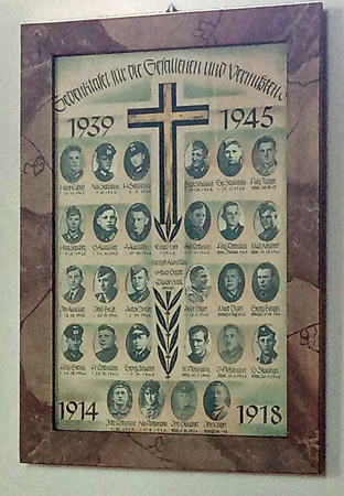 Gedenkbild in der Kirche St. Wendelinus. Einzelgedenken auf Grabsteinen.