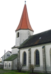 Gravierte Steinplatte im äußeren Eingangsbereich der evang.-luth. Filialkirche St. Hieronymus