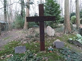 „Gefallen April 1945“ weist auf die Grabstellen hin. Ein in den Märzunruhen des Jahres 1919 in Berlin