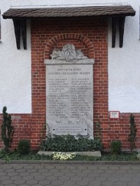 Zweiten Weltkrieg ihr Leben ließen. Auf einer Sandsteintafel sind 33 Namen verzeichnet.