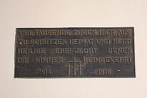 Viel tausende zogen hier aus zu schützen Heimat und Herd, heilige Ehrfurcht denen die nimmer heimgekehrt.1914 – 1918