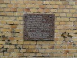Gedenktafel an der Friedhofsmauer: An dieser Stelle wurden in den Frühjahrstagen 1945 drei