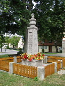 Das Denkmal der Orte Westheim und Sontheim steht auf einer kleinen Grünfläche vor dem Friedhof.