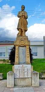 Quadratisches Monument gekrönt mit einer Soldatenstatue neben dem