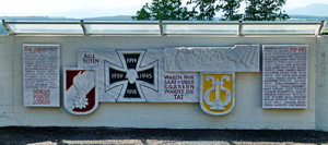 Wandplaketten an der Balustrade des Kirchenvorplatzes mit den Wappen