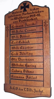 2014 gab es in Zerbst eine Ausstellung zum 1. Weltkrieg. Hier wurden zum ersten Mal nach Jahrzehnten die Gefallenentafeln aus der Kirche St.