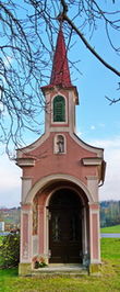 Gedenktafeln links und rechts vom Kapelleneingang am Dorfplatz.