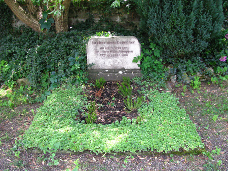 Grab mit Gedenkstein auf dem Friedhof für die Leuna-Arbeiter, die hier am 30.03.1921 zu Tode kamen.