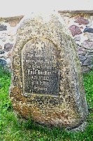 Gedenken auf Steinblock auf Kriegsgräberstätte Rossoschka - Russland