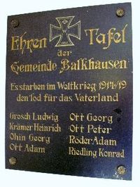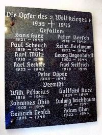 In der evangelischen Kirche sind, beiderseits des Einganges, zwei Namenstafeln aus Marmor angebracht.