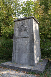 Breisach am Rhein (Jäg. Regt.), Landkreis Breisgau-Hochschwarzwald, Baden-WürttembergPLZ 79206 Am Schlossberg; quadratische Säule, vorn Bildrelief „Reiter“, darunter Inschrift