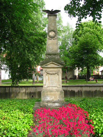 Kriegerdenkmal aus Anlass des Deutsch-Französischen Krieges 1870/71 in den Grünanlagen am Petersbach.