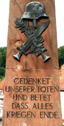 Vorne auf der Stele: GEDENKET UNSERER TOTEN UND BETET DASS ALLES KRIEGEN ENDE.