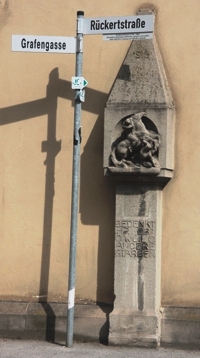 An der Kreuzung Grafengasse / Rückertstraße steht eine einfache Gedenksäule.