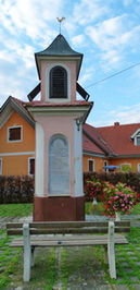 Wandplakette auf einem Bildstock am Dorfplatz.