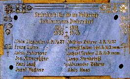 Gedenktafel für die im Weltkriege Gefallenen aus Dietersdorf 1914 – 1918 1939 – 1945