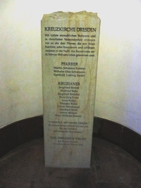 Kreuzkirche Dresden Mit tiefem Bedauern und in christlicher Verbundenheit erinnern wir an die drei Pfarrer, die mit ihren Familien, zehn Kruzianern und zahllosen Anderen in der Nacht des Feuersturms am 13. Februar 1945 ums Leben gekommen sind.