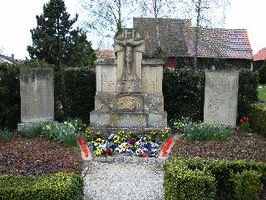 Das Kriegerdenkmal befindet sich auf dem Friedhof. In der Mitte ein Steinkreuz mit angefügten Steinen, verziert mit einem Stahlhelm, Schwert, Lorbeer- und Eichenästen, sowie einer Sterbeszene. Daneben zwei freistehende Gedenksteine.